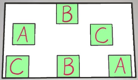 Anleitung: Verbinde die Kästen mit jeweils den gleichen Buchstaben so, dass sich die Verbindungslinien nicht überschneiden